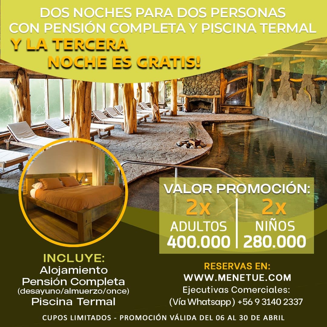 Te invitamos a disfrutar de una maravillosa escapada en nuestras cómodas cabañas. Todas ellas cuentan con tinaja privada llenas de agua termal y una increíble vista a “Laguna Ancapulli”.